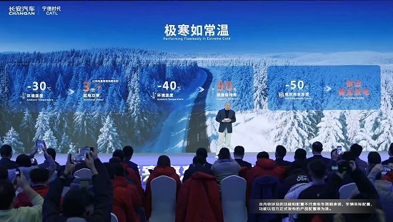 值得关注的是,宁德时代钠电池具备极低温稳定放电的特性。据高焕介绍,长安汽车搭载宁德时代钠新电池的这款车,在-30℃条件下,整车放电功率比同电量常规铁锂车型提升近3倍,-40℃极寒下容量保持率超90%,甚至在-50℃的极端环境下还能稳定放电。