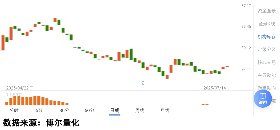 其实不止阿凯,去年发小老李也踩过类似的坑。他入手了一只消费类标的,结果公司突然发布中报预亏公告,营收比上年同期降了近两成。老李当时半夜给我打语音,语气慌得不行,说要赶紧割肉离场。我让他打开我用了十多年的量化大数据工具,指着图里的橙色柱体说:你看这「机构库存」数据,从4月中旬开始就一直没断过。「机构库存」说白了就是反映机构资金交易的活跃程度,柱子越多越密集,说明参与的机构资金越多、持续时间越长——它不是告诉你机构买了多少卖了多少,而是看他们有没有积极参与交易。老李半信半疑地没动,后来那只标的的表现一路向好,二季度以来的表现远超市场平均水平。现在他逢人就说,要是当时光盯着预亏消息卖了,线: